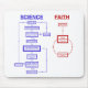 Ett diagram som illustrerar den olika tanken, bearbetar bak vetenskap och tro. När De är nytt, bevisa upptäcks, testar ändrar vetenskap det mot existerande teorier och teorin för att förbättra förstår universum. Religionen ignorerar att säga emott bevisar i ett oändligt kretsar av okunnighet.