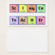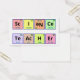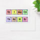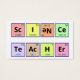 Affärskort. Ord "Science Teacher" är skriven med hjälp av symboler från det periodiska bord i inslag. Inslag Neon (NE) vändes upp och ner för att få det brev som krävs för "vetenskapen" i ord.
