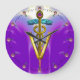 VETERINÄR- SYMBOL för GULD- CADUCEUS/blåttlilor Stor Klocka