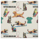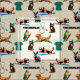 Veterinär mönster med hundar, katter, illrar, kaniner, parakiter, medicinska skrubbar och stetoskop.