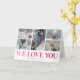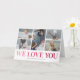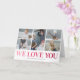 Visa din mamma hur mycket du bryr dig om henne med detta moderna och unika morsdagskort. Inte ett vanligt gratulationskort, detta innehåller fem av dina favorit familjebilder att infoga, vilket gör kortet mer meningsfullt och personligt. Det har också en klassisk rosa ombre "Vi älskar dig" titel som visas mot en vit bakgrund. Din mamma kommer att bli verkligen rörd när hon ser sin familjs speciella meddelande, i ett kort som bevarar minnena år efter år.