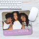 Denna unika musmattgift säger "vi älskar dig, mamma" i vit, modern och script typografi överlagd på lila. Lägg till ditt favoritfoto för att helt anpassa.