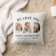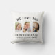 Vi älskar dig valv ovanför feta Pappa bokstäver ifyllda med tre personliga foton, med Glad fars dag och anpassningsbara barnens namn nedan på en ren vit bakgrund. Denna roliga, moderna foto kudde gör en minnesvärd fars dag present som hela familjen kan hjälpa till att skapa. Ladda upp dina egna foton och redigera namnen för att anpassa.