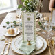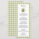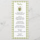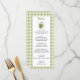 Dessa menykort har en salvia grön och vit gingham-kant med en akvarell matcha latte-illustration i en masonburk. Designen inkluderar en stor mjuk grön slinga knuten runt burken och små spridda hjärtan i dämpade gröna nyanser. Visar den lekfulla texten "Baby, We Love You So Matcha!" i matchande grön bokstavsstil. Perfekt för att visa mat- och dryckesalternativ på din baby shower brunch eller teparty. Koordinerar med hela matchande kollektionen för en komplett dukning.