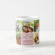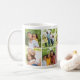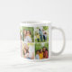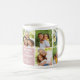 En söt Vi älskar dig farmor foto kaffemugg med nio fyrkantiga foton och en dammig rosa panel med vit Vi älskar dig farmor text, en hjärtaccent och redigerbara barnbarns namn. Alla färger, text och foton kan anpassas — en underbar morsdag eller födelsedagspresent från barnbarnen.