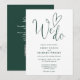 Denna smaragdgröna minimalistiska eleganta brölloppsinbjudan i script-typografi kan anpassas med din information, inklusive din bröllopswebbplats och din QR-kod på baksidan. Designad av Thisisnotme©
