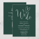 Denna smaragdgröna minimalistiska bröllopsinbjudan i elegant skrivstil kan anpassas med din information i chic typografi med detaljer om din bröllopswebb och din QR-kod på baksidan. Designad av Thisisnotme