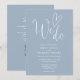 Denna dammiga blå minimalistiska eleganta script bröllopsinbjudan kan anpassas med din information i chic typografi med detaljer om din bröllopswebbplats och din QR-kod på baksidan. Designad av Thisisnotme