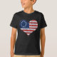 Färgfläckad, vit och blå original 13-stat Betsy Ross American flagga i form av ett hjärta, med första raden från ingressen till Förenta staternas konstitution.