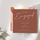 Vi har en enkel inbjudan till Förlovningen Photo Terracotta. Berätta elegant om din förlovning för dina vänner och din familj med den här enkla men eleganten "Vi är engagerade" inbjudan till förlovningsfest, med en minimalistisk, vit skriptdesign på en ren, bränd orange bakgrund, med en personlig av er båda på baksidan. Denna förlovning inbjuder ge till en modern, minimalistisk känsla, perfekt för vilken enkel sak som helst, elegant bröllop. Denna minimala inbjudan till terracotta-förlovning anger tonen för alla enkla, underskattade inställningar av bröllop-förlovningen omgivna av delikat skör och blommor, och matchar bränd orange eller rost bröllop dekoration. Ett perfekt som tillägg till något enkelt, minimalt eller rustiskt bröllop firande. Söndag Collective © av Rachel Hannah Gee