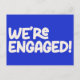 Meddela din förlovning med ett litet retro-kort med det här vykortet "Vi är engagerade" som innehåller lekfull vit typografi på modern blå bakgrund. Den vintage-inspirerade designen ger en glad och nostalgisk vibe, medan den feta blåa tillför en contemporary som vrider. Perfekt för par som kärlek en roligt, ett unikt sätt att sina stora nyheter, trycks på ett budgetvänligt vykort, skapar det både snyggt och överkomligt för att skicka ut ditt meddelande i Groovy mode.