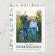 Dela din förlovning med dina vänner och familj med detta förlovningskort. Den här gör-det-själv-mallen är enkel att använda. Du kan enkelt ladda upp ett foto av er två, ändra namnen och lägga till ett personligt meddelande. Folk kommer att älska att se er två tillsammans. Baksidan har ett abstrakt, slitit geometriskt triangelmönster. Det kan framkalla julgran-bilder under högtiderna. Du kan helt enkelt ta bort det om du vill ha en renare och enklare minimalistisk look. Skicka ett meddelande till mig (jag heter Nelda) om du behöver hjälp. Grattis på er förlovning!