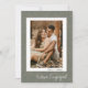 Det här moderna och unika kortet för inbjudan till förlovningsfest på foto är perfekt att låta familj och vänner veta att du är engagerad och inbjudan dem till party. Skicka de här till dina gäster med det vita kalligrafskriptet "Vi är Engaged", din fotobakgrund accentuerad med ro guld blommigt foliage-övertäckning på gröntens bakgrund. På motsatt sida finns all information från party. Lär DIG (gör det själv) genom att redigera texten i textrutorna på högerna av skärm. Finns även i vykortsformat.