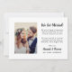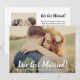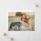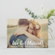 Meddela er vigsel med detta djärva penselskriftsfoto vigselkort med "Vi gifte oss!" i vit text med en hjärtaccent över ert favoritfoto. Namn och bröllopsdatum visas tydligt nedanför. Baksidan innehåller ett andra foto och ett anpassningsbart brev som berättar historien om er privata ceremoni. Ersätt båda fotona och redigera all text för att skapa ett minne som era nära och kära kommer att värna om.