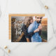 Vi är gifter sig. Modern på trendskript som skrivs för hand sparar datumkorten.