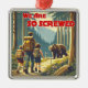 Det är en björn på spåret. Den här konstiga designen visar att en björn närmar sig en familjetoppling i ett vintage resor poster format.