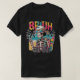 En roligt och en edgy t-shirt-design med coola-skelett-skolpojke ge ett fredstecken medan du bar solglasögon och ryggsäck. Utformningen ställs in mot en vibrerande strandbakgrund med handflatan träd och texten "Bruh" visas i stor, fetstilt och färglös brev längst upp, med "Ut" skriven i grund.
