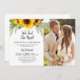 Den här inbjudan från bröllop firande innehåller ett foto av lodrät ram och accentueras med en vattenfärggrafik av elegant solblommor och grönenergi. Det här är perfekten för att meddela giftermål och bjuda in din familj och dina vänner till en mottagning eller firande.
