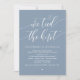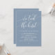 Markera början på din evighet med elegans med hjälp av vår vackra contemporary romantiska, dammiga blått, temat bröllop elopement firande inbjudningskort, "vi binder knuten". Perfekt för par att utvidga sitt glada tillfälle, denna inbjudan är sofistikerad med en antydan om spelaktsamhet, som anger en minnesvärd händelse. Med ett modernt tema för skriptdesign utan tidslängd lägger det till en lite förfinad charm till dina festligheter. Den här inbjudan är skapad av TeeshaDerrick och lovar att på ett klokt sätt fånga din kärlek-historia.