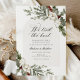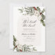 Vintergrön bröllopsinbjudan med en båge ram av vattenfärgade evergreens. Anpassa med din information. Klicka på "klicka för att anpassa ytterligare" om du vill ändra teckensnittet stil, storlek eller färg.