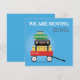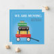 Detta är vårt Vi flyttar-kort. Detta redigerbara välkomstkort har packade väskor i en röd kärra som ger det en rolig och vänlig känsla. Perfekt för att hålla vänner och familj uppdaterade, eller för att bjuda in dem till en inflyttningsfest. Denna illustration har både bra färg och detaljer.