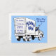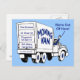 Vi flyttar vykort. Detta vykort är dekorerat på ena sidan med en flyttbil och ger utrymme för att skriva din nya adress och namn. Det visar också en person som vinkar och säger - "Vi är härifrån!"