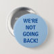 Knappnål läses, "VI GÅR INTE TILLBAKA" Visas här i mörkblå bokstäver med ljusblå bakgrund. Bra för demokrater, liberaler och progressiva. Underbar politisk förklaring för att stödja Kamala Harris som president.