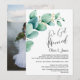 Bjud in dina vänner och nära och kära till din efterbröllopsfest med denna akvarell gröna eukalyptusblad inbjudan för att fira ditt senaste äktenskap som har en bild av det lyckliga paret på baksidan.