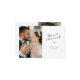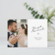 elegant vi gifte oss bröllopsannonsering design med vacker svart text. Brudens och brudgummens bild och bakgrundsfärg och text kan anpassas.