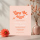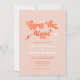 Högtidlighålla din speciella dag med den här "Vi Gifter sig Retro Modern Bröllopsinbjudan" Med ett varmt och inbjudande tema för färg i mjuk orange kombineras modern elegans med retrocharm. Teckensnittet för matrisskript ger en lekfull beröring, perfekt för par som vill ha en snyggt och en unik bröllopsinbjudan. Perfekt för vintage, bohemi eller modernt bröllop.