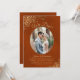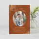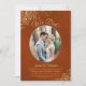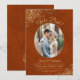 Denna vackra bröllopsfest eller efterfestinbjudan har en elegant titel i skrivstil som lyder "We Did!". Den har en enkel men elegant design med fin guldskriftsstil på en marmorerad rostorange eller bränd umbra-färgad bakgrund, och ert foto i en oval ram omgiven av falska folie-spetsar. Perfekt för bröllop eller firanden som äger rum efter en privat ceremoni. Ett bra sätt att inbjuda familj och vänner att fira er kärlek.
