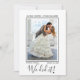 Vi gjorde det! Modern Elegance Bröllop-annons-fotokort - lägg enkelt till bröllop-foto-, brids- och rummets namn- och bröllop-datumuppgifter och bröllop i svart färg-skrift. Bröllop-meddelande med ett bild-kort med vitt gräns - modernt, rent, minimalistiskt format. Svarta punkter på baksidan. Skapat av © Lesruba Bröllop.