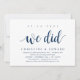 Modern Rustic, Marinblå Script-tema inbjudningskort (med korttitel: vi gjorde det). Det är perfekt för din efterbröllopsfest / efterbröllopsfirande. Lägg till dina detaljer i matchande svart teckensnitt / bokstäver.