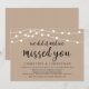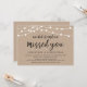 Vackra Moderna Rustika Lantgårds Strängljus, Svart Skriftstil på Brun Kraft Bakgrund, Bröllop Flytt Tillkännagivande, Inbjudningskort (Vi gjorde det och vi saknade dig). Detta är perfekt för din bröllopsfest och efterbröllopsfirande. Lägg till dina detaljer i matchande teckensnitt / bokstäver.