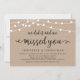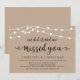 Vackra Moderna Rustika Lantbrukssträngljus, Svart skrivstil på Brun Kraft Bakgrund, Bröllopsflykt Meddelande, Inbjudningskort (Vi gjorde det och vi saknade dig). Detta är perfekt för din bröllopsfest och efterbröllopsfirande. Lägg till dina detaljer i matchande teckensnitt / bokstäver.