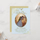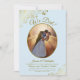 Denna vackra bröllopsinbjudan eller efterfestinbjudan har en elegant titel som lyder "Vi Gjorde Det!" Den har en enkel men elegant design med fin guldskrift på en blek pulverblå bakgrund, och ert foto i en oval ram omgiven av falska guldspetsar. Perfekt för elopement eller firanden som äger rum efter en privat ceremoni. Ett bra sätt att bjuda in familj och vänner att fira er kärlek.