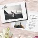 Denna utflykts strand Just Married-kort fungerar både som en bröllopsannonsering och ett "spara datum"-kort! Perfekt för dem som har haft destinationbröllop, utflykter, strandceremonier eller honmoonade på stranden, detta allt-i-ett-kort passar säkert dina behov! Baksidan av kortet har plats för ditt favoritbröllopsfoto (ett porträtt). Med utrymme att anpassa med datumet för din kommande firande, fungerar detta som ett "spara datum"-kort, och mottagarna kan vara säkra på att enkelt spara datumet för din bröllopsfest! Anpassa med dina egna bröllopsdetaljer för ett sött, lätt att anpassa, personligt kort till familj och vänner!