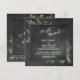 Denna charmiga bröllopsmottagning eller mottagningsfest-inbjudan har en svart tavla-bakgrund samt ett badge med en ramad fyrkantig svart tavla där jag har placerat oordnade buketter med akvarellgrönska. Med en elegant, svängig modern scriptfont har jag återgett orden "vi gifte oss" högst upp, som en rubrik till dina egna personliga detaljer. Med samma "eleganta" font har jag placerat en grafik som lyder "mr & mrs" på baksidan. Alla lager lades till separat och lämnades upplåsta så att du kan ändra vad du vill. // 57 //