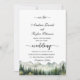 En inbjudan till elegant bröllop med vattenfärgsberg och gräs träd som du kan anpassa med dina uppgifter.