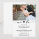 Meddela dina vänner och familj att du har gift dig! Och bjud sedan in dem till din bröllopsfest. "Vi gör det" i kalligrafisk skrift med hjärta. Anpassa med ditt foto och detaljerad information för en efterbröllopsfirande