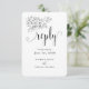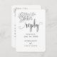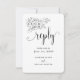Ett modernt och elegant, e-post tillbaka till adress, ett svarskort för OSA med en liten blommigt i svart och vitt hand plockade med en kalligrafi för byte av elegant som meddelar att du "svarar" och ber dina gäster att svara med detaljerade gästnummer och måltider på kortets baksida.