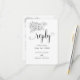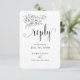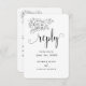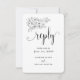 Ett modernt och elegant "vi gör"-meddelande om bröllop-e-post till dig med svarskort med en liten vit hand plockade-buquet med en elegant-blommigt-bukett med kalligrafi för bytekalligrafi som meddelar "svara" och ber dina gäster att svara utan måltider.