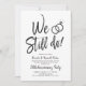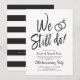 En rolig och unik skriptbrevsskrivning specialdesignad för din årsdagsfest eller förnyelse av äktenskapslöfte. Den har orden "Vi gör fortfarande" med vigselringar vilande ovanför. Under detta finns utrymme för dina unika fest- eller evenemangsuppgifter. På baksidan finns snygga svarta och vita ränder som kompletterar framsidan.