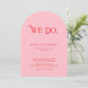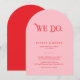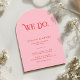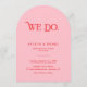 Denna moderna retro rosa och röda "vi gör" bröllopsinbjudan har en djärv och stilfull bågformad layout. Den mjuka rosa bakgrunden är parad med rik röd typografi för att skapa ett rent retro modernt utseende. Den stora "vi gör" rubriken ger en självsäker och modern känsla samtidigt som designen hålls elegant och enkel.