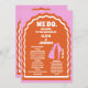 Vårt minimala, djärva program för serviceuppdrag i stil bröllop är perfekt för trendigets par som kärlek står ut och skapar ett djärvt påstående. Vår design har en djärv kombination av rosa och orange färg. Enkel abstrakt vågigt båge och cirkelformer skapar ett fet utseende med "Vi gör." som visas fet i vitt stort teckensnitt. Den omvända sidan har en enkel modern design med ett fet monogram och ett par bröllop webbplats adress