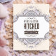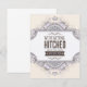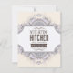 Benvit bakgrund med en dekorativ, ramad vit mittpunkt. I dekorationerna ingår lilaska dammar och den blomstra mönster-omgivande mittpunkten ram med centrerad llac krona överst och grund. Typografiktext i brunt med anpassningsbar datum i lilac.