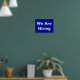 En modern blå poster för ett butiksfönster som meddelar allmänheten att du anställer ny personal.