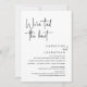 Meddela dig lyckligt i stil med vårt moderna manusdesignkort för bröllop elopement-festinbjudan. Lyckligtvis har vi bundit knuten till knuten. Inbjudningskort från firande är idealiskt för par som har bestämt sig för att fly och vill vara värd för ett party för att fira sin union. Med sin sofistikerade men lekfulla utformning kommer inbjudan säkert att ange tonen för en händelse som inte kan glömmas bort. Inbjudningskortet har en minimalistisk design med ett svartvitt schema, vilket gör att du får lite elegans i firande.