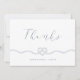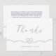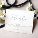 Vårt minimala och elegant marin och vita nautiskt tema tack du kort är perfekt för ett havstemat nautiska bröllop. Den främre utformningen har en handritad hjärtformad linbild med "Tack"-designad i en elegant med skript-typografi. "Tack" är designat i en elegant där skripttypografi flödar. Det vassa vita och djupa färg skapar ett modernt nautiskt koncept. Den omvända sidan visar vår handdragna lineillustration tillsammans med ett personligt budskap och parets namn. Alla illustrationer är handritade originalbilder av Moodthology.