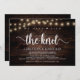 Vi har bundit knuten till Bröllop Elopement-meddelande/inbjudan-kort, i Rustic farm Wood, String Ljus design. Det här är perfekt för ditt bröllopsmottagande och party efter bröllop firande. Lägg till information i matchande teckensnitt/text. #TeeshaDerrick